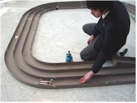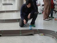 ミニサイズ周回クラスは約9mのミニ四駆コースです。最初の1周目のラップタイムを測ります。