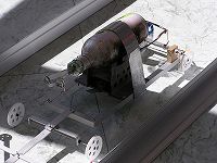 上はヘロンの反動タービンによるプロペラカーです。蒸気を噴出すパイプに直接プロペラを固定しています。右上は学研キットの改造版です。