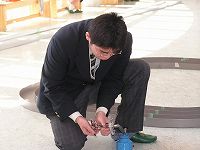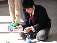 学研が展示ブースを出してくれました。その右側がマガジン付録予定のスチームエンジンキットで、賞品として提供してくれました。右上は理科研究部のブース、3ボルトクーラーも展示・実演しました。